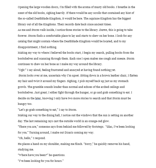 Creative writing is one of the most influential types of entertainment recognized in present times. With its elements of inexplicable imaginative concepts and the substantial amount of formulaic present within most works, fictional stories have shaped a large variation of communities and will furthermore, without a doubt, continue to do so. From my earliest memories, I remember always loving fictional stories and fairytales, and basically anything else in the same category. When I discovered my passion for creative writing, it was like a flower had blossomed within me, or like a dull lightbulb finally reached the light. I'd always fancied the creative works of both myself and others who enjoyed the same forums as I did; and with this cessation in mind, I'd come to the conclusion that I relished in script-writing rather than going through the process of producing an entire film on my own. And though I was switching my focus, I still wanted to keep the same elements and theme I'd worked with before, which, of course, was 'The Arts of Daily Life', but instead of working with 'The Sacred Realm' I wanted to swap that for 'Invention and Fantasy', as I feel it would better fit the aura of my works on art. For my scripts for this year, I wanted to focus mostly on the realism that can be recognized in them while also including a few elements of fantastical ideas within the story. My most recent script, which is named Spencer, is based on the first chapter of the novella I am currently writing about a girl, Spencer, who grows up in the 1930s and is later sealed to a fate of eternal immortality. The story is a great mix of both realism and fantasy, as it takes place in a real-time period and consists of the main character later becoming a mystical creature.